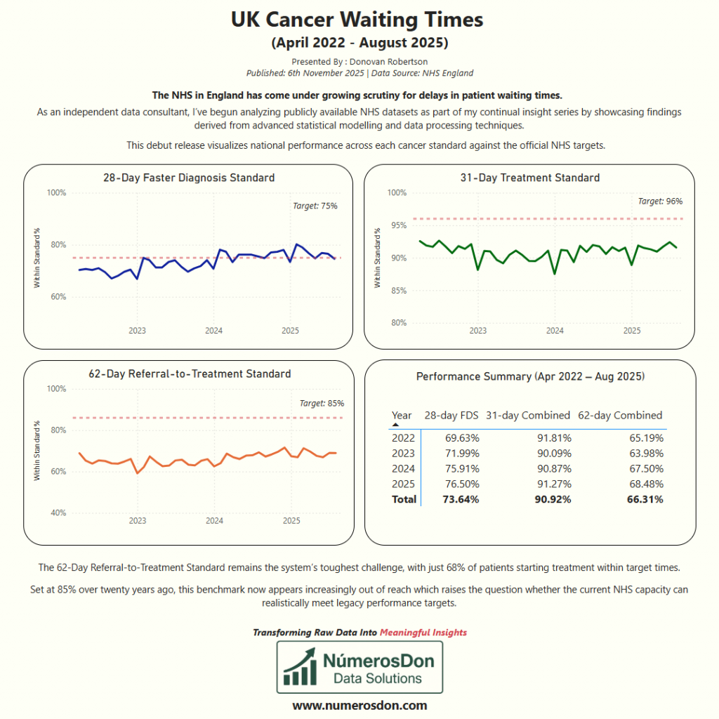 I’ve decided to turn my analytical lens toward the NHS, starting with an exploration of Cancer Waiting Times.